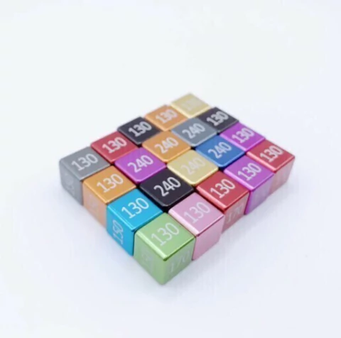 Cada dado é usinado em alumínio billet 6061-T6 de grau aeronáutico, depois anodizado em uma de nossas 10 cores brilhantes e com o número gravado a laser como toque final.